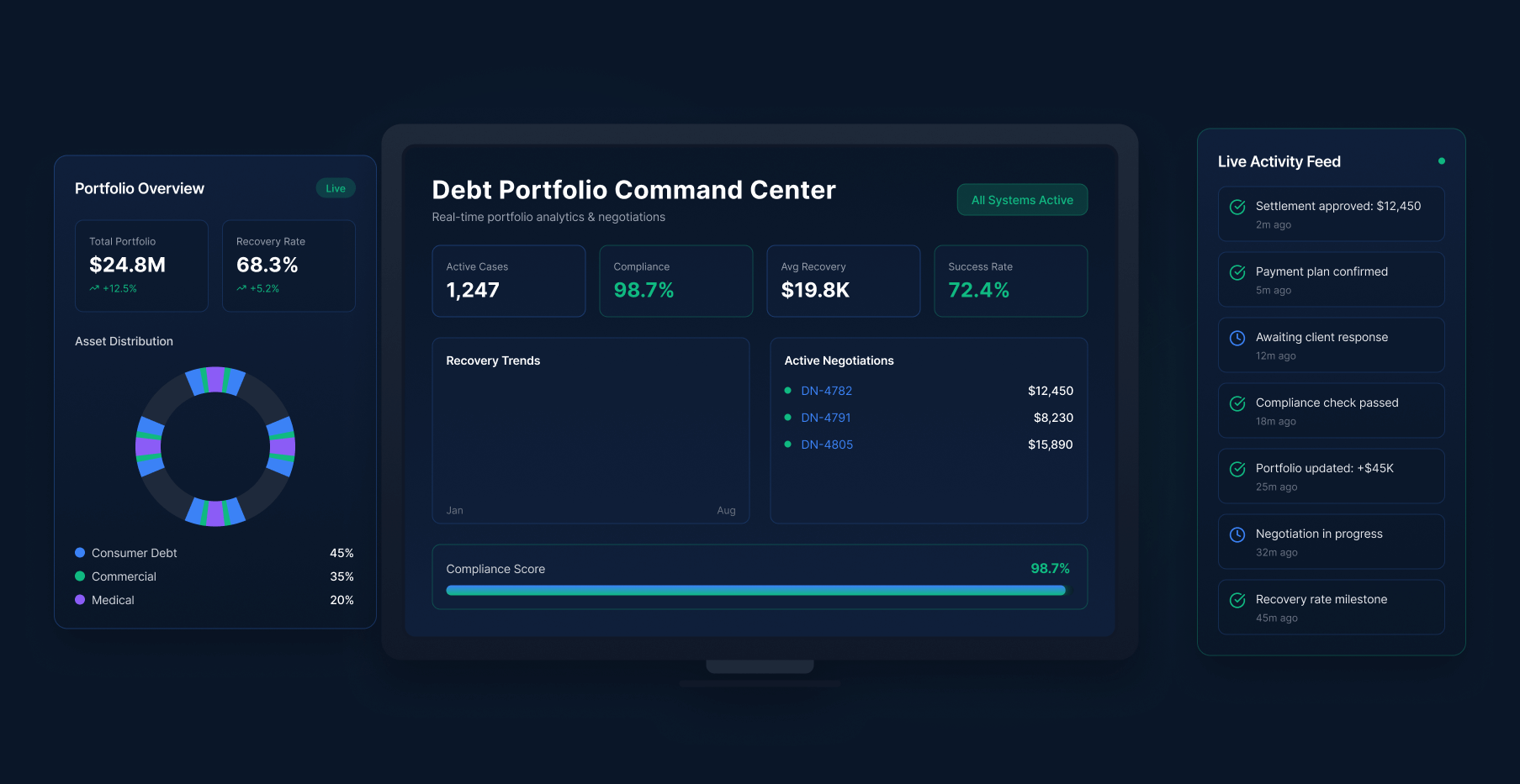 Traditional debt collection suffers from low recovery rates, high operational costs, and negative consumer experiences. Manual processes lead to inconsistent outcomes and regulatory compliance risks.