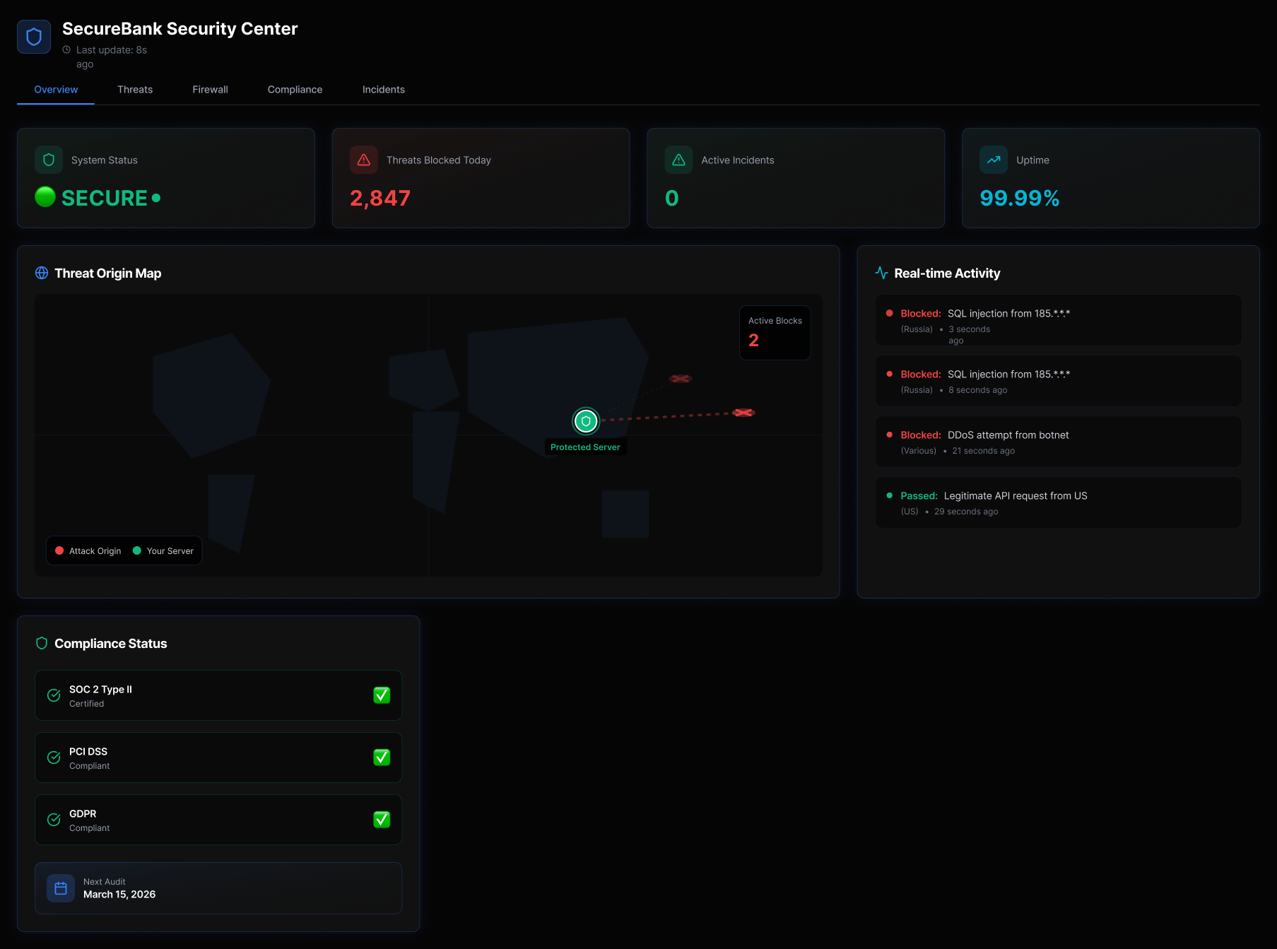 A growing fintech company offering digital banking services was preparing for rapid expansion but faced serious security concerns. They had experienced minor security incidents, lacked proper monitoring, and needed SOC 2 Type II certification to land enterprise clients.